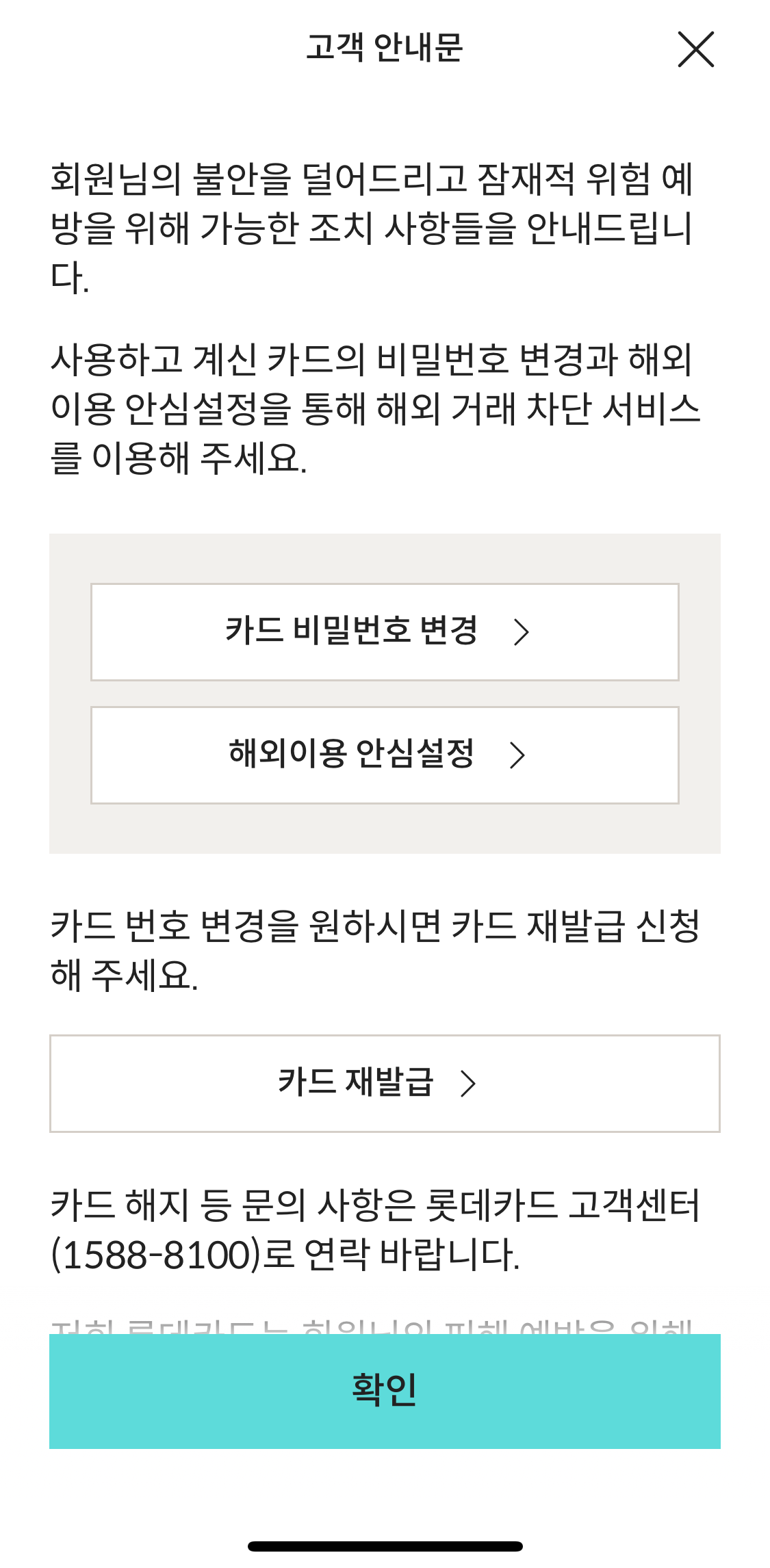 - 불안하다면 카드를 새로 발급받거나 해지