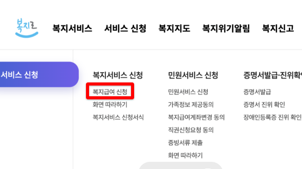 - 서비스 신청 → 복지서비스 신청