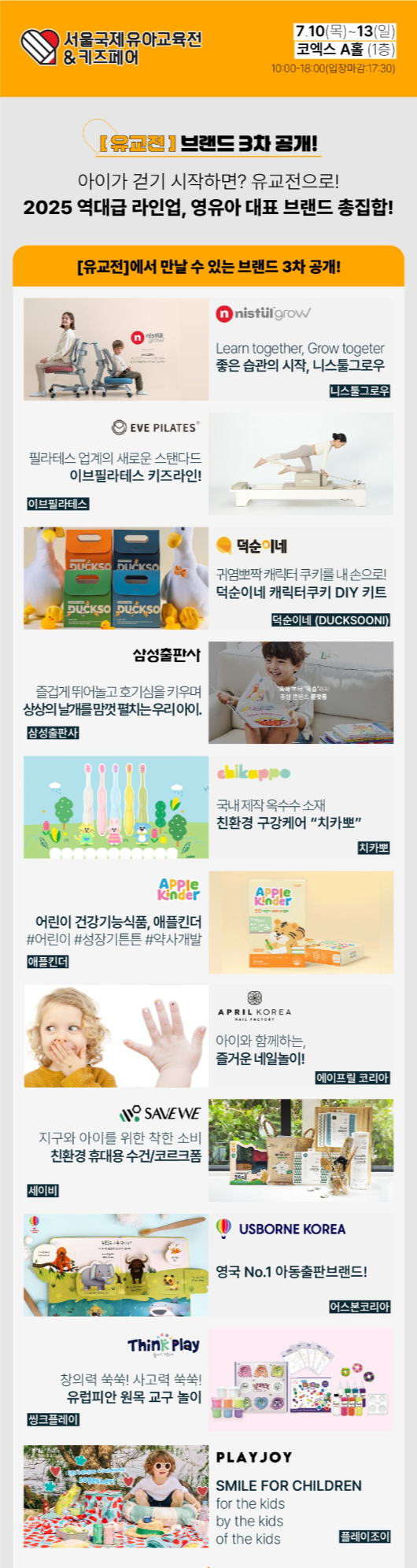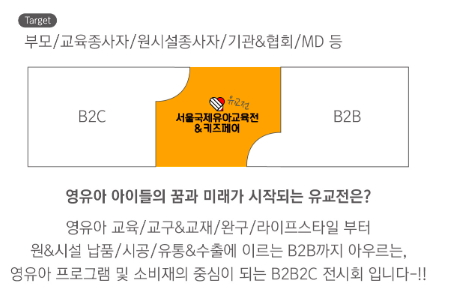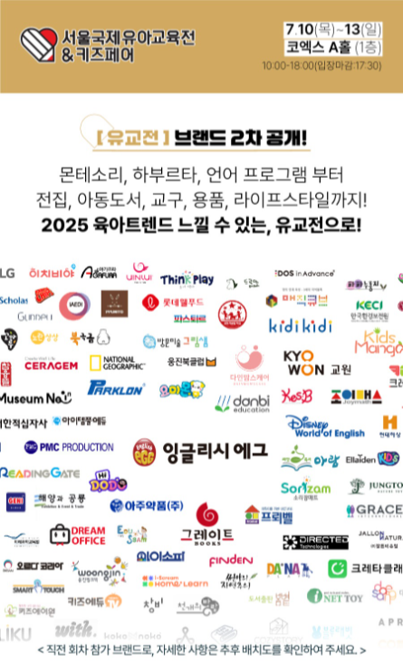 서울국제유아교육전·키즈페어는 국내 최대 규모의 유아 교육 전문 박람회로, 교육 콘텐츠, 완구, 문구, 도서, 체험 활동 등 다양한 분야를 아우릅니다.