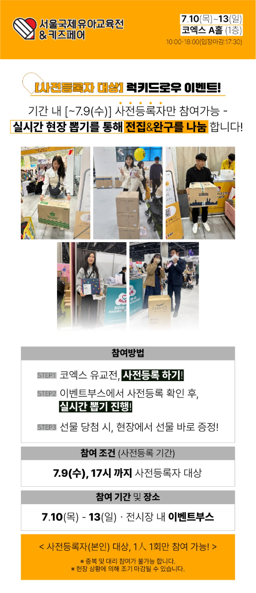 사전등록은 7월 9일 17:00에 마감됩니다. 방문 계획이 있으시면 늦기전에 사전 등록 하시는것을 추천드립니다.