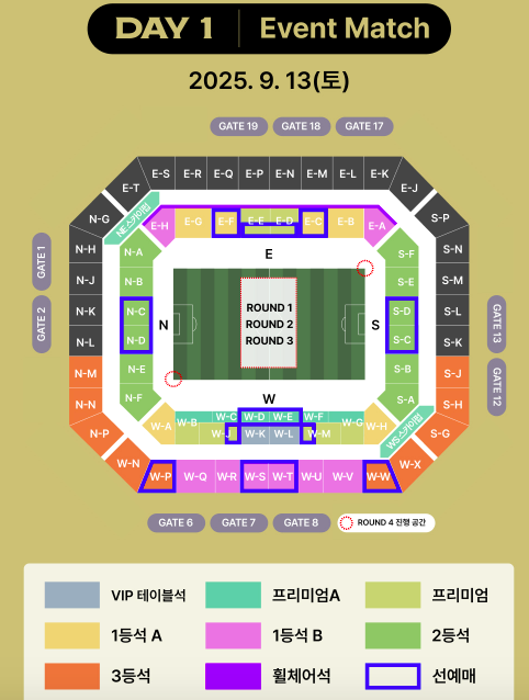 - DAY2: 2등석 A (120,000원) - 전체 경기 흐름을 완벽하게 파악