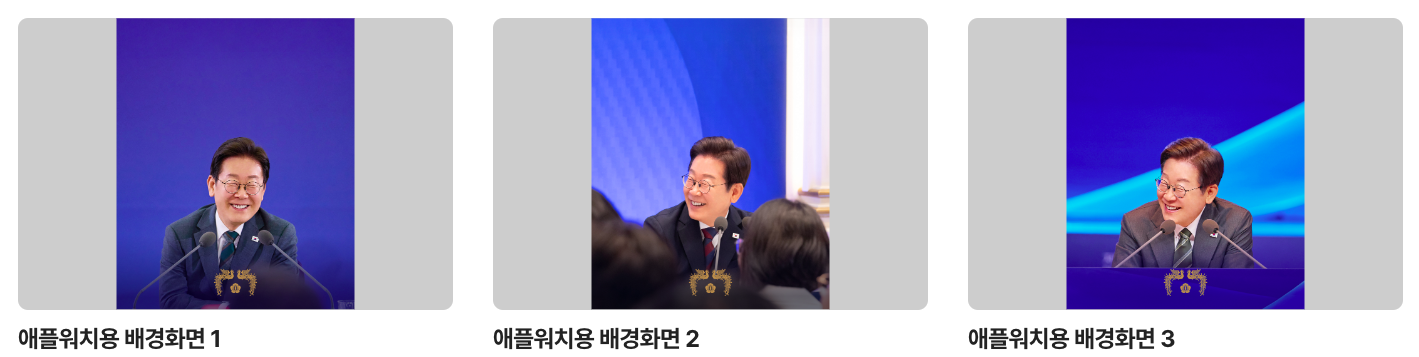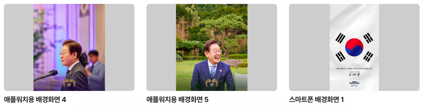 | 스마트폰 배경화면 | 3종 - 대통령 서명, 휘장 포함 |