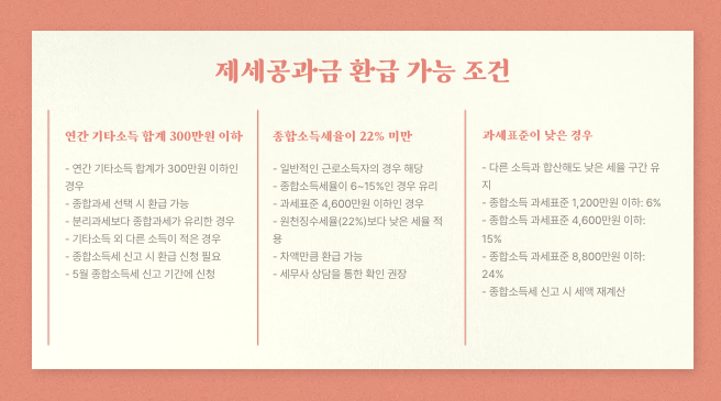 - 연간 기타소득 합계 300만원 이하로 종합과세 선택
