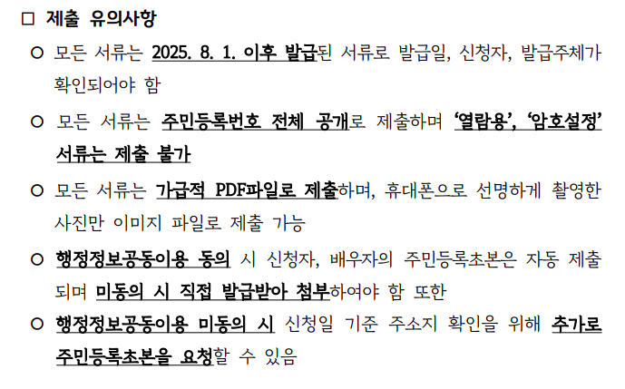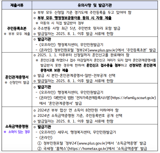 | 혼인 | 2025년 1월 1일 이후 ~ 신청일 사이 혼인신고 완료 |