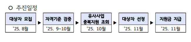- 지급일: 2025년 11. 10.(월) ~ 11. 14.(금)(예정) (선정자 개별 안내)