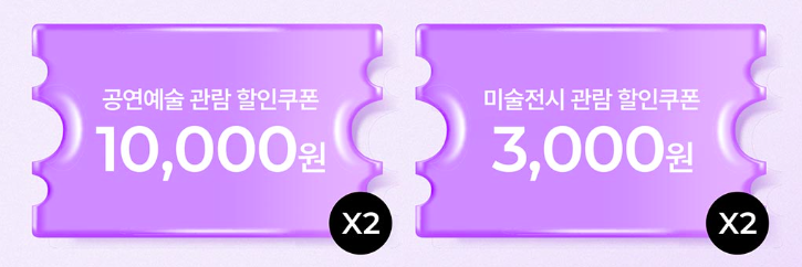 - 발급조건: 1인당 공연 2매, 전시 2매까지, 예매처별 계정 기준으로 선착순 발급