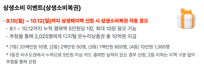 - ‘상생소비복권’ 이벤트 자동 응모(9월 15일~10월 12일 신청자)