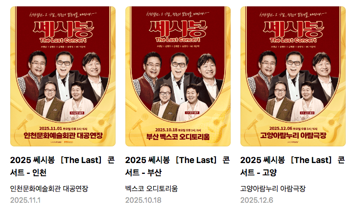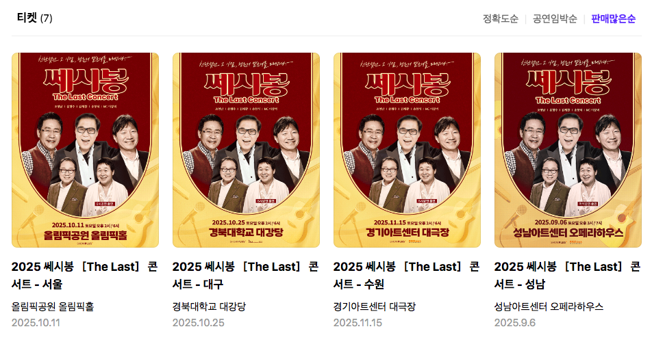 2025 쎄시봉 [The Last] 콘서트는 공식 티켓 예매처인 예스24티켓, 인터파크 티켓에서 예매하실 수 있습니다.