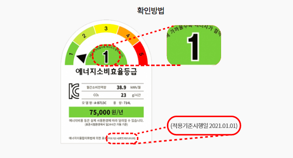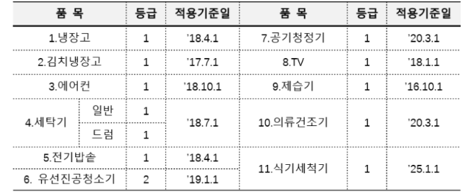 제품마다 에너지효율등급 기준이 다르며, 라벨 미부착 제품은 환급이 불가합니다.