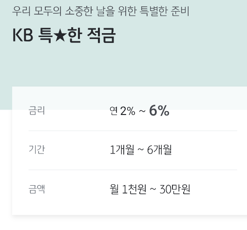 KB 특별한 적금은 KB국민은행에서 출시한 초단기 적금 상품입니다.