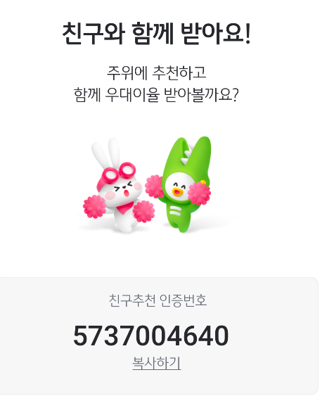 이게 바로 핵심입니다! 친구추천 인증번호를 입력하거나, 다른 사람에게 내 번호를 공유하면 우대이율을 받을 수 있어요.